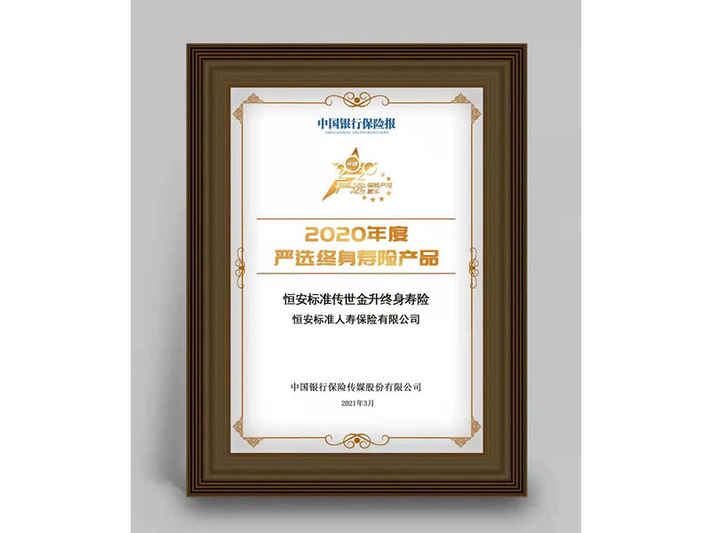 獲“2020年度嚴選終身壽險產(chǎn)品”獎項 3月