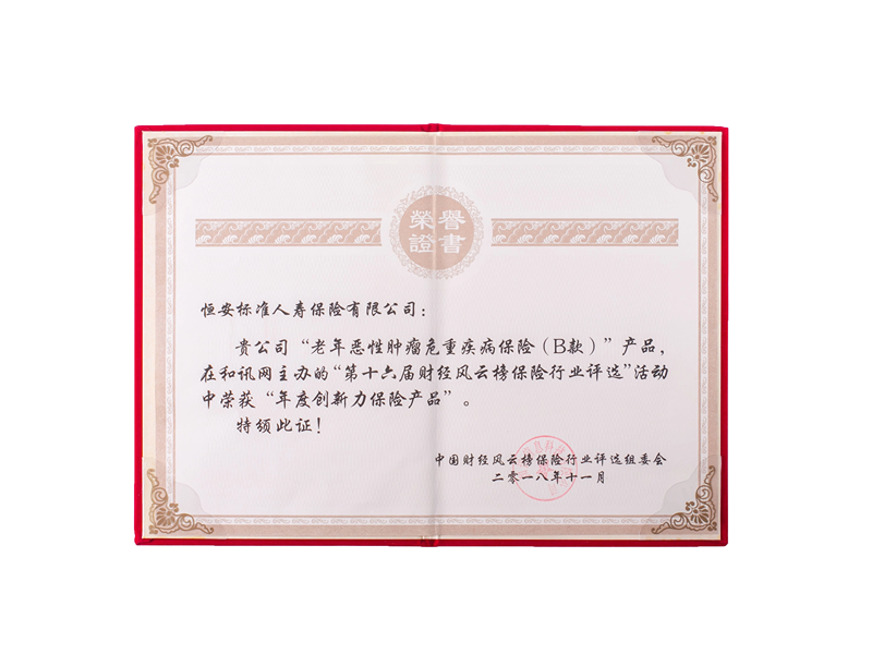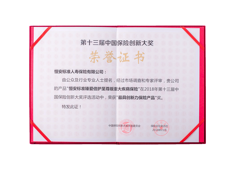 獲“2018年度最具創(chuàng )新力保險產(chǎn)品”獎項 11月